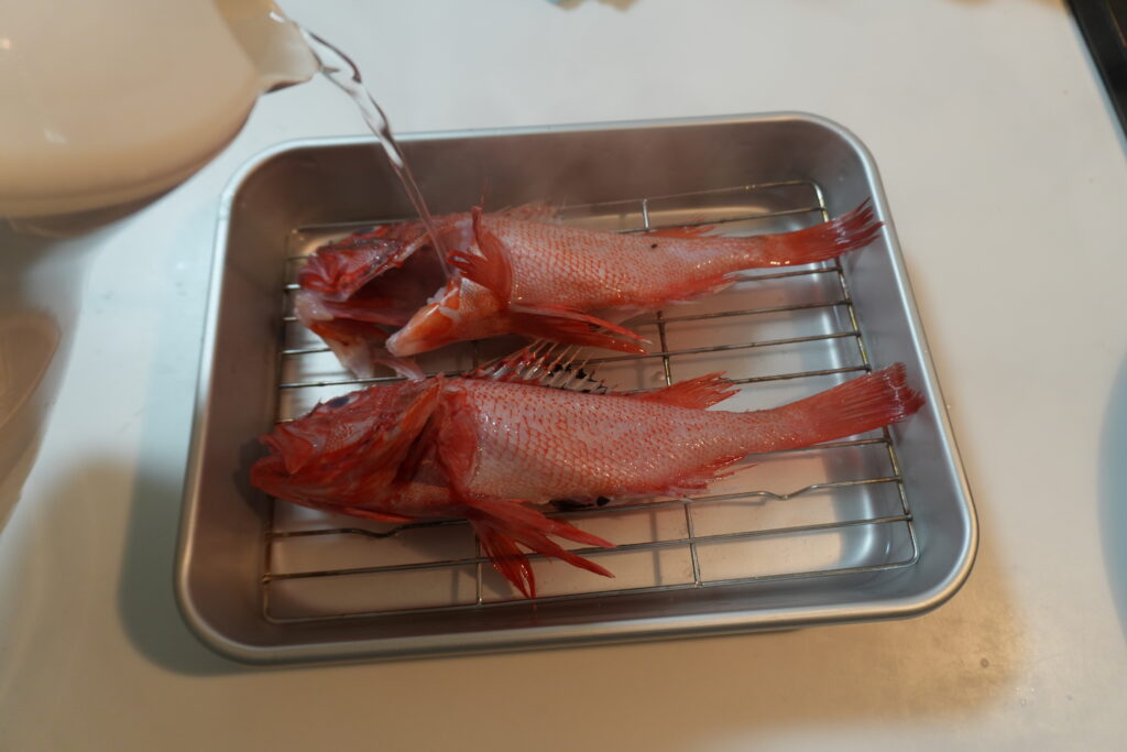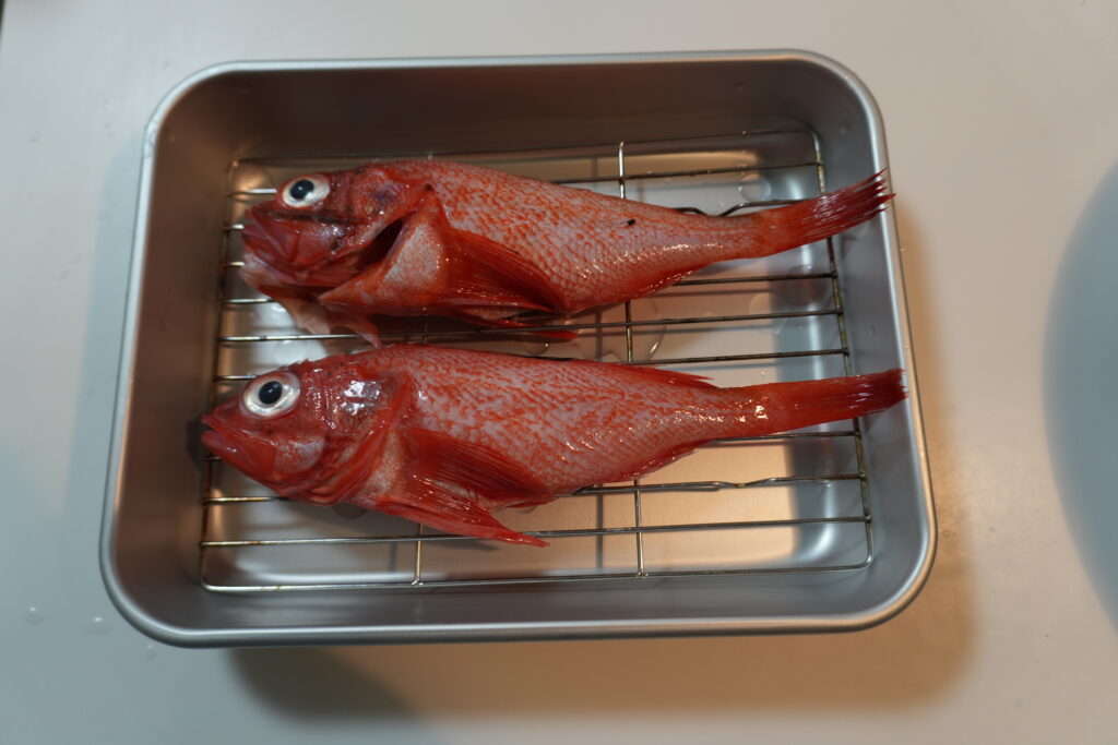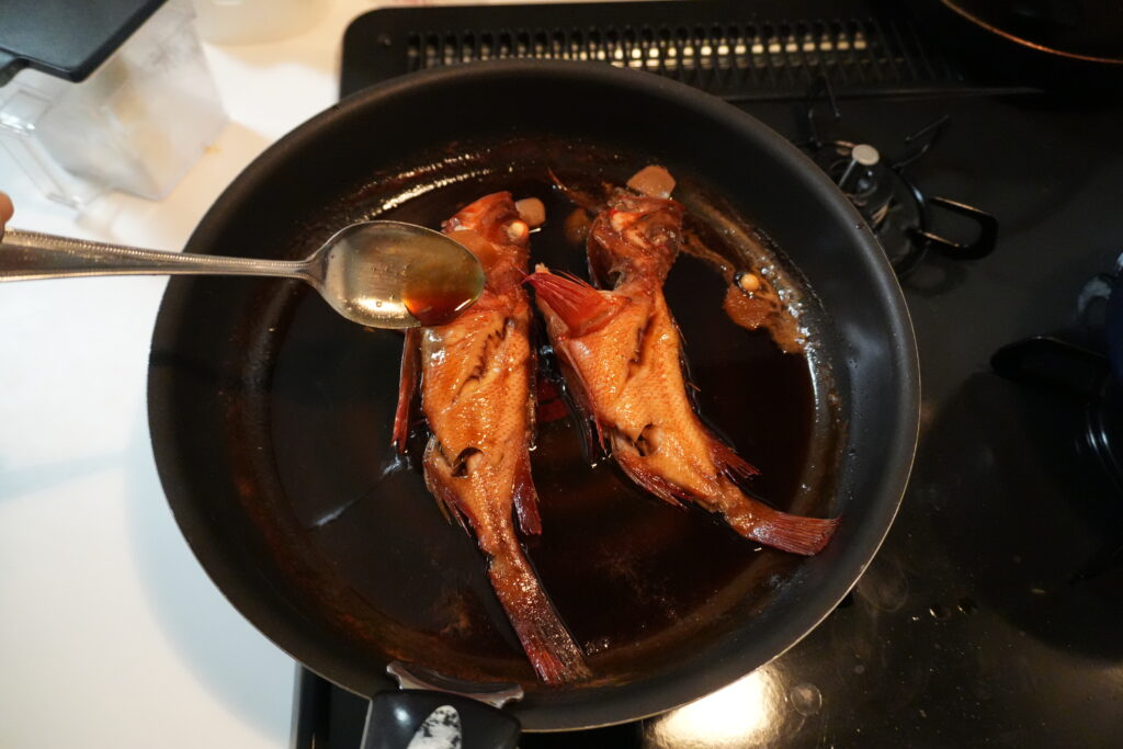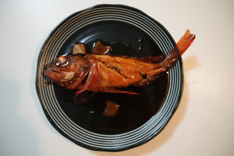 キンキの煮付けBy recipe-den / 2025年11月26日 キンキの煮付け(ザラメ仕様) ー深い甘みと上品な照りを楽しむ一皿ー 脂のりの良いキンキを、ザラメで仕上げることで 普通の砂糖では出せない深い甘みと艶が生まれる煮付け。 — 材料(2人前) 材料 分量 キンキ(切り身 or 1尾) 300〜400g 生姜(薄切り) 10〜15g 水 150ml 酒 150ml ザラメ 大さじ2 みりん 大さじ2 醤油 大さじ2.5〜3(味見しながら) 作り方 ① 下処理 キンキを洗い、ぬめりを落とす 水気をしっかり拭く 皮に浅く切り込みを入れる ※余裕があれば →**霜降り(熱湯→冷水)**で臭みと汚れを除去 理由 ぬめり・水分=臭みの原因 切り込み→皮の破れ防止&味がしみる — ② 煮汁ベースを作る 鍋に以下を入れ、弱〜中火で2〜3分加熱: 酒 / 水 / ザラメ / みりん /生姜 →ザラメが完全に溶けたら準備OK。 理由 ザラメは砂糖より溶けにくいため先に溶かすと味ムラ防止+コクUP。 — ③ キンキを煮る 煮汁が沸いたら皮を上にして入れる 落とし蓋 弱めの中火で10〜12分 ポイント →煮汁は静かにふつふつする程度 →煮立てすぎると皮がめくれる — ④ 醤油を加えて仕上げ 醤油を入れ、さらに5〜7分 最後に煮汁を回しかけながら1〜2分煮詰める 理由 →醤油は最初に入れると風味が飛ぶため後入れ。 →回しかけることで照りと味の均一化。 — ⑤ 盛り付け 魚はすくわずスライド移動 →身崩れ防止 煮汁を少しだけかけて完成 — 手間暇ポイント ポイント 理由 ザラメ使用 甘さが丸い・照りが強い 酒多め 臭み抜き+旨味引き出し 弱め火力&落とし蓋 皮・身が崩れず艶よく仕上がる 醤油後入れ 香りを残し立体感ある味に 最後のかけ回し 照り・ムラ・ツヤ改善 — 味の特徴 甘辛なのに後味は生姜のおかげで軽い ザラメの甘さは砂糖の甘さより柔らかい 白米はもちろん酒とも相性◎ — 食べどき 出来立て:照り・香りMAX 翌日:味がなじみ、しっとり深い。